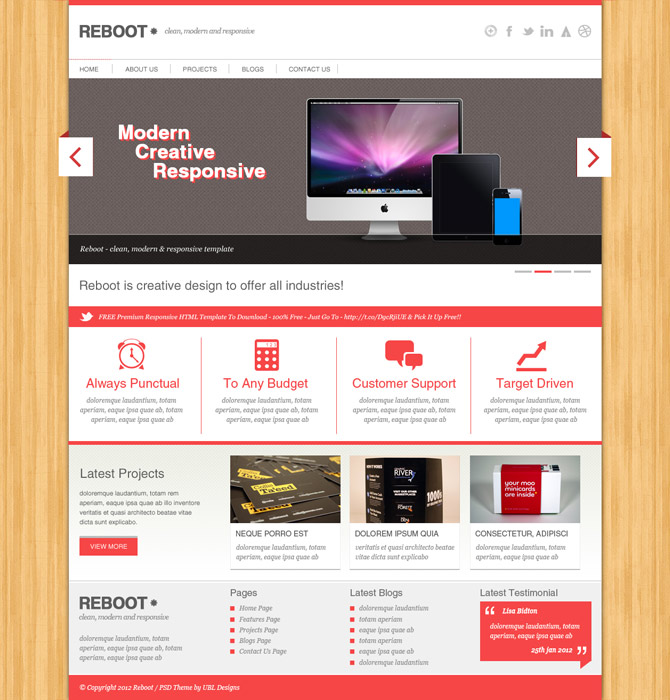 The REBOOT PSD Template is designed for responsive Layout. It can be used as an Web Design Website, Business Theme, Personal Blog, Portfolio Website, Magazine or any project. If you are wanting to have a nice looking professional website then lets get your front-end development skills working with this great PSD template. Professional design with the attention to details. The Psd files are fully layered within named folders so everything is easy to find and edit.